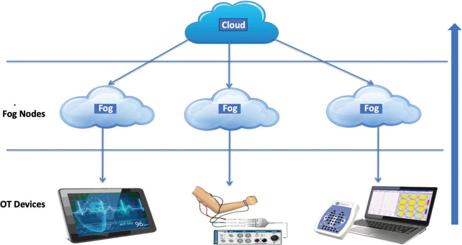 Clinics have been implementing the IoT for several years, and now they have healthcare IoT appliances in patient care rooms and their systems. However, clinical agencies, clinics, and corporations do not address the protection threat of healthcare IoT that is linked to a local area network or a wide area network. The IoT devices are readily hijacked, and this can lead to various concerns owing to weak validation and encoding techniques. Therefore, blockchain is launched for safe and trustworthy transfer in healthcare IoT. Figure 1 demonstrates the framework of fog computing (FC).