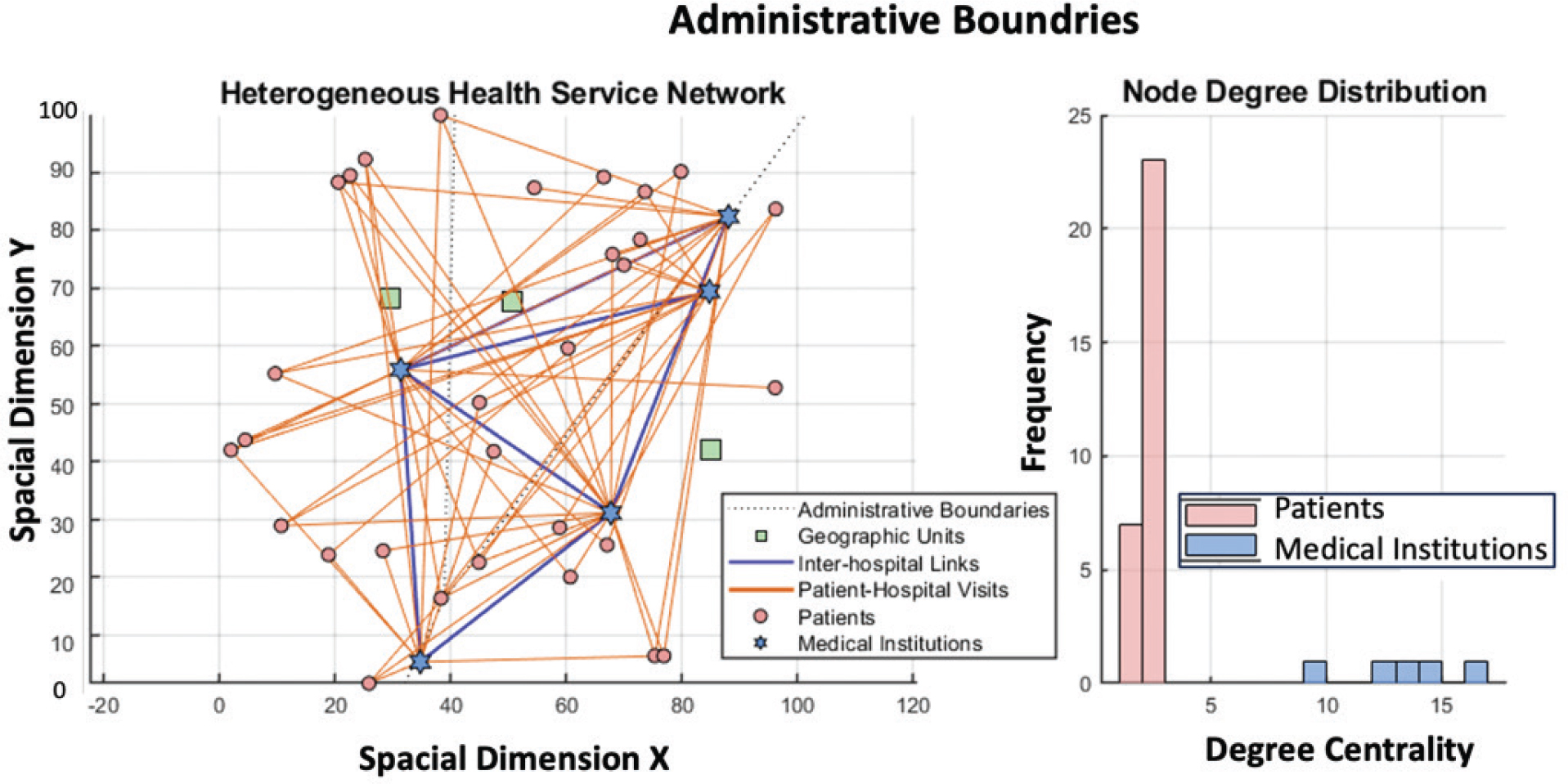 Fig. 6. Analysis of key institution identification and spatial path pressure in optimizing medical service network.