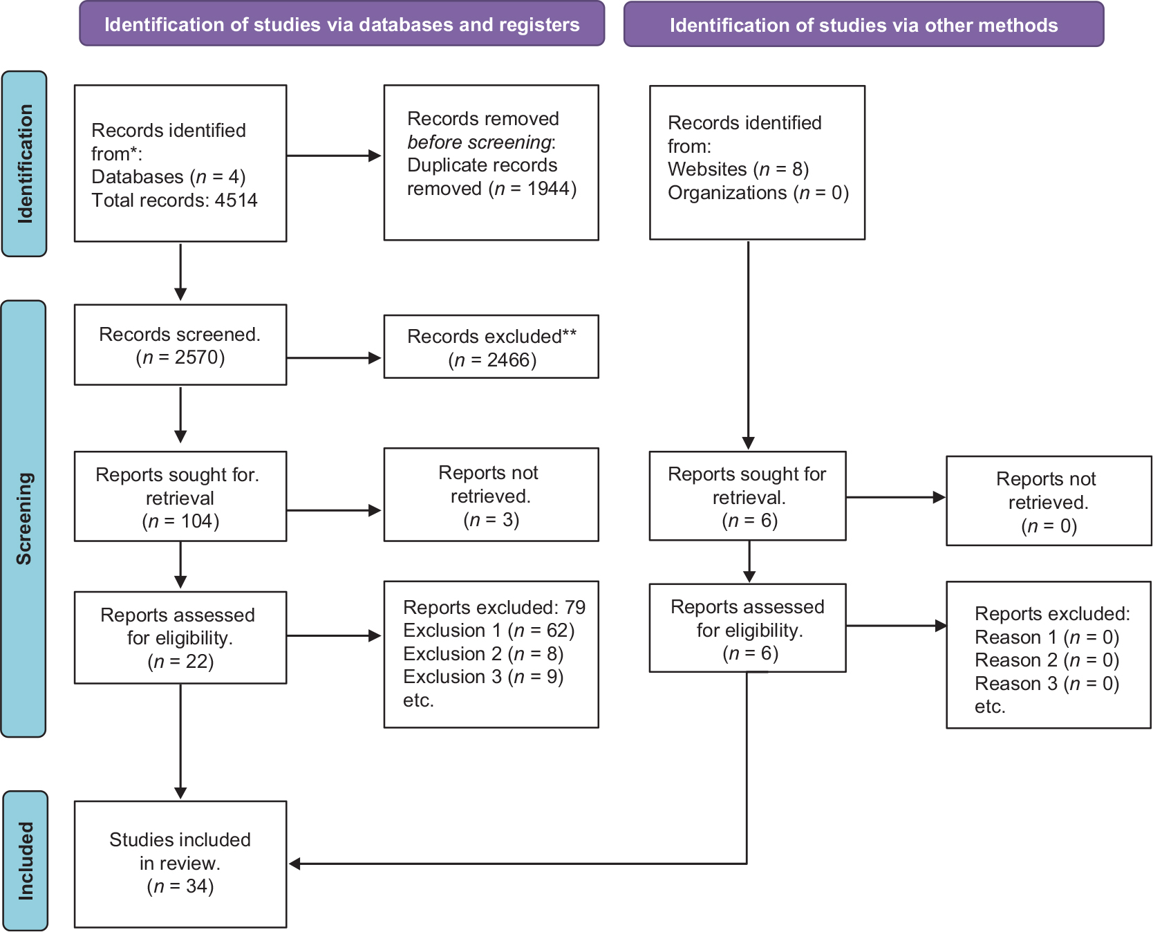 In addition to these database searches, a web search for pertinent industry articles from other practitioners and industry reports was sought. Eight such reports or website references were added, and they are called out in the PRISMA flow chart. In total, 34 articles were pursued for final review.