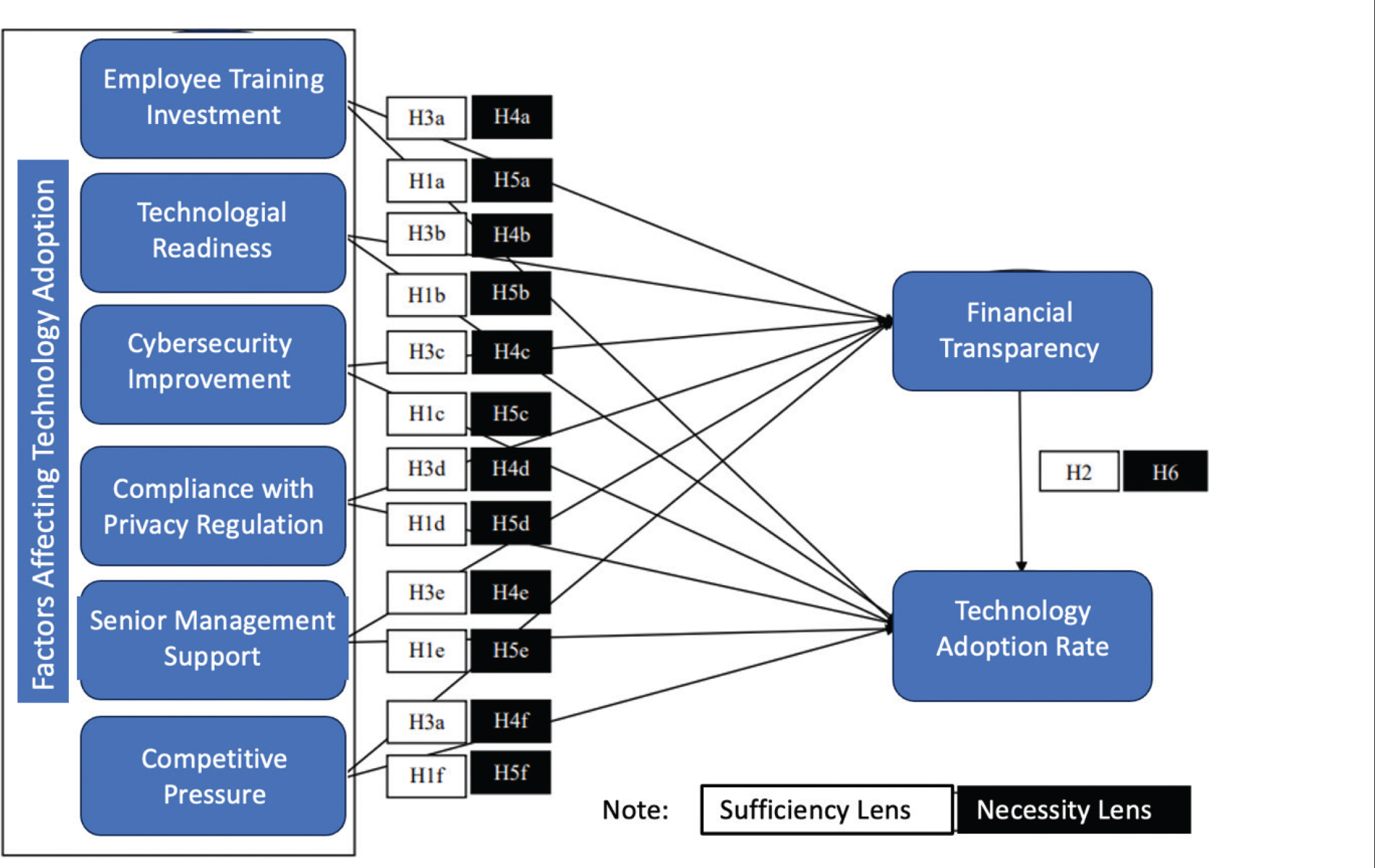 In contrast, compliance with privacy regulations and competitive pressure, while showing some relationship in SEM paths, were not identified as necessary nor sufficient conditions. This distinction reinforces that not all statistically significant drivers are essential to outcome realization and that must-have conditions should be prioritized in organizational planning. Transparency itself was shown to be a sufficient—but not necessary—condition for technology acceptance, implying that although increasing transparency strengthens the likelihood of adoption, other combinations of internal support and readiness can also lead to the same outcome.